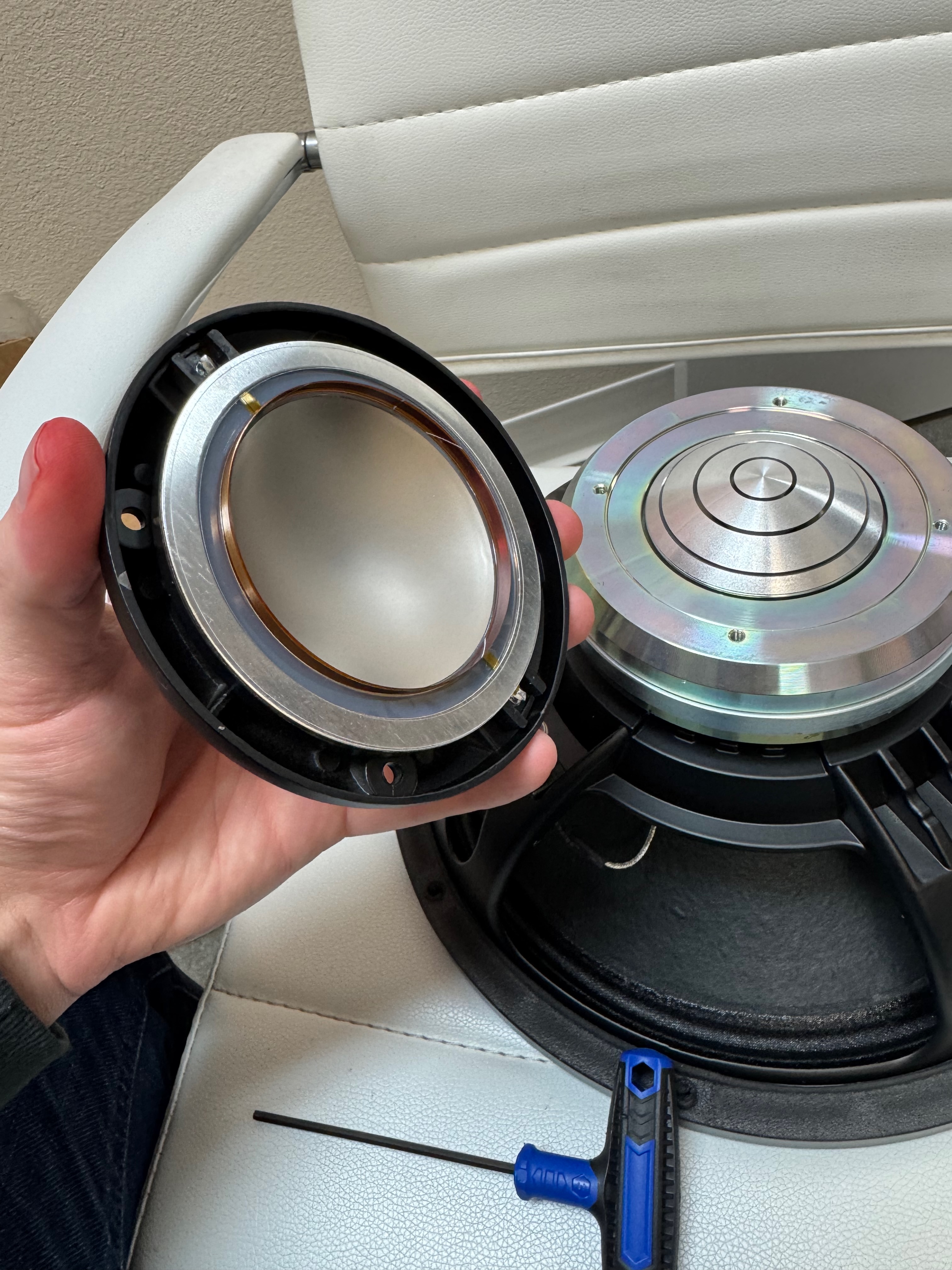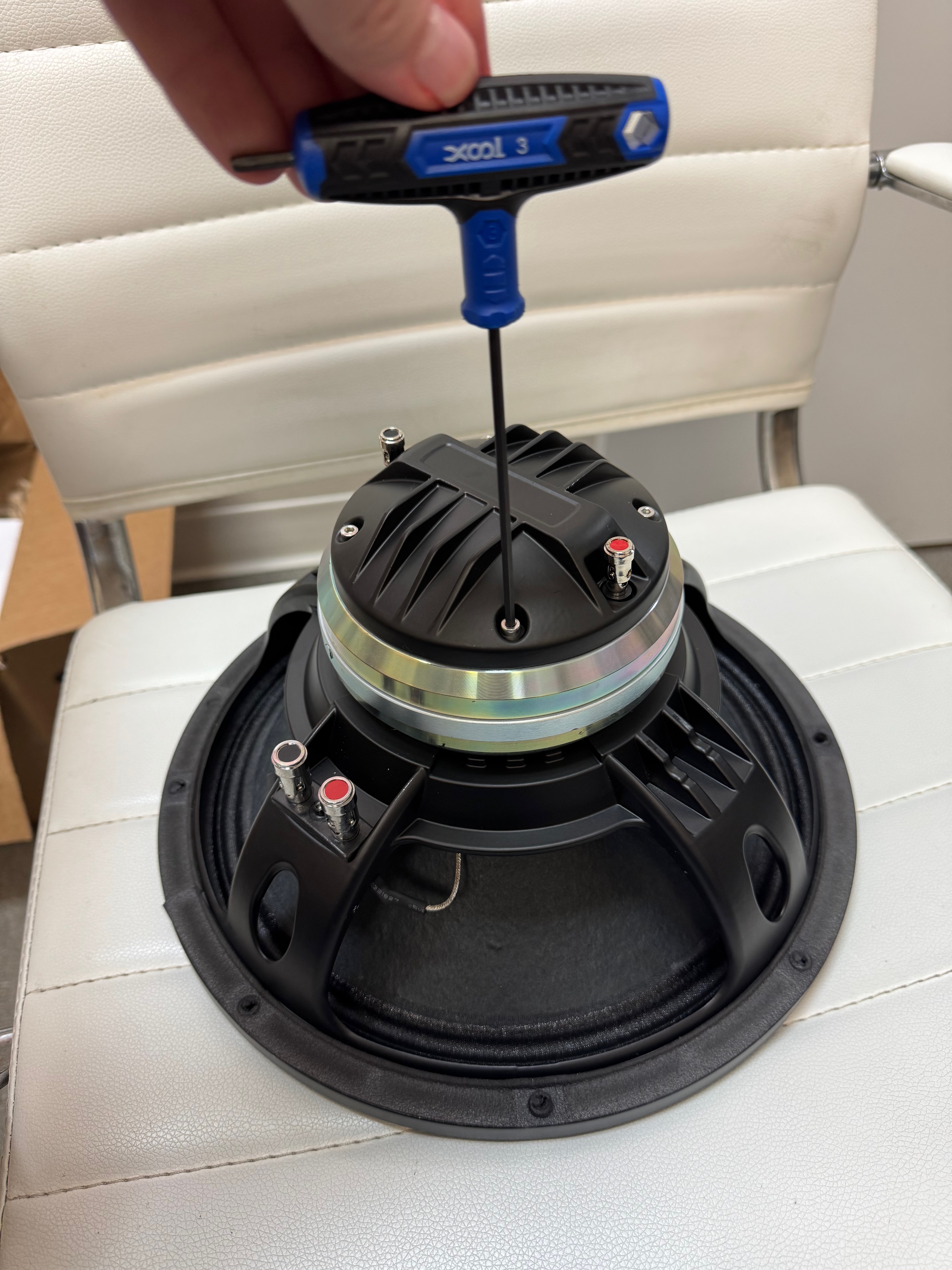 Use an H3 (3mm) Hex Tool to remove the diaphragm screws on the rear of the driver