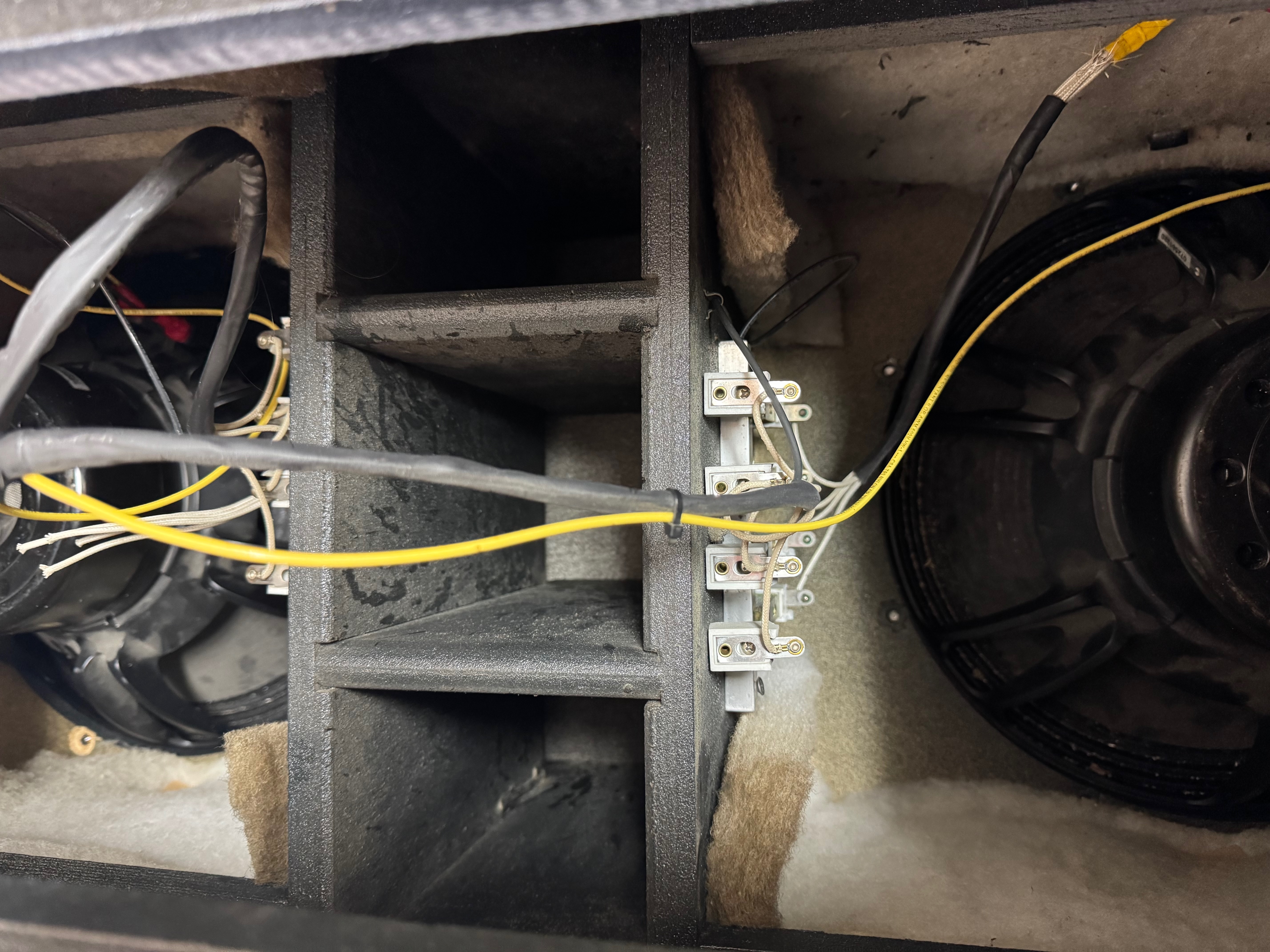 - To test the contacts, flip the cabinet onto its feet and connect power and signal to the amp.