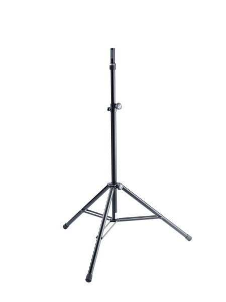 The K&M 21467 is a heavy-duty three-legged tripod with a ring lock mechanism. It can hold up to 110lbs and is height adjustable from 54-85.4in (1370-2170mm).