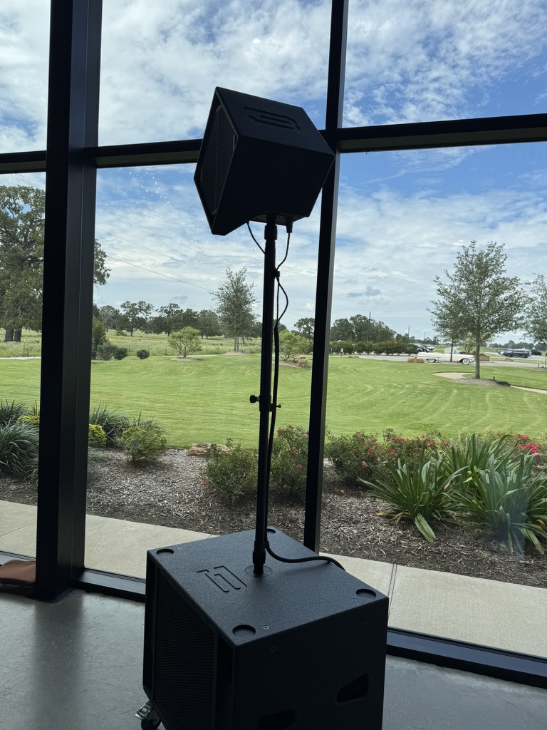 While there are a variety of different options for mounting your BASSBOSS Loudspeakers, the vast majority of mobile users place their subs on the ground while putting their tops on a tripod or sub pole. The benefit of this configuration is you get +3-6dB of gain from your subs due to half-space, and your tops can get high enough to avoid being blocked. Low frequencies can diffract around peoples' heads, while higher frequencies can reflect and bounce, so it is important to get your tops high enough so you can get even coverage across the audience. We often find many customers do not have their tops high enough; if they are firing right in the "face" of the front audience members, the sound can be blocked for people behind them, causing extreme volume for the front and not enough for the back. To get your tops up in the air to an appropriate level, you can use a sub pole (which uses the sub as a convenient base) or a tripod, which has its own legs.