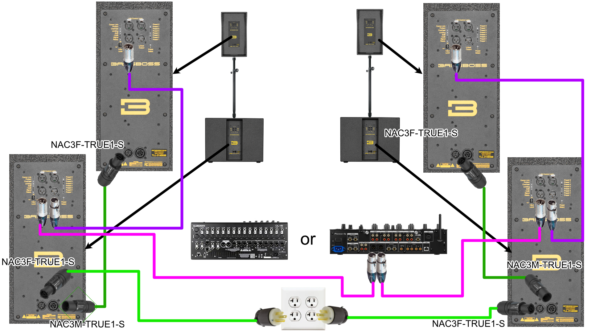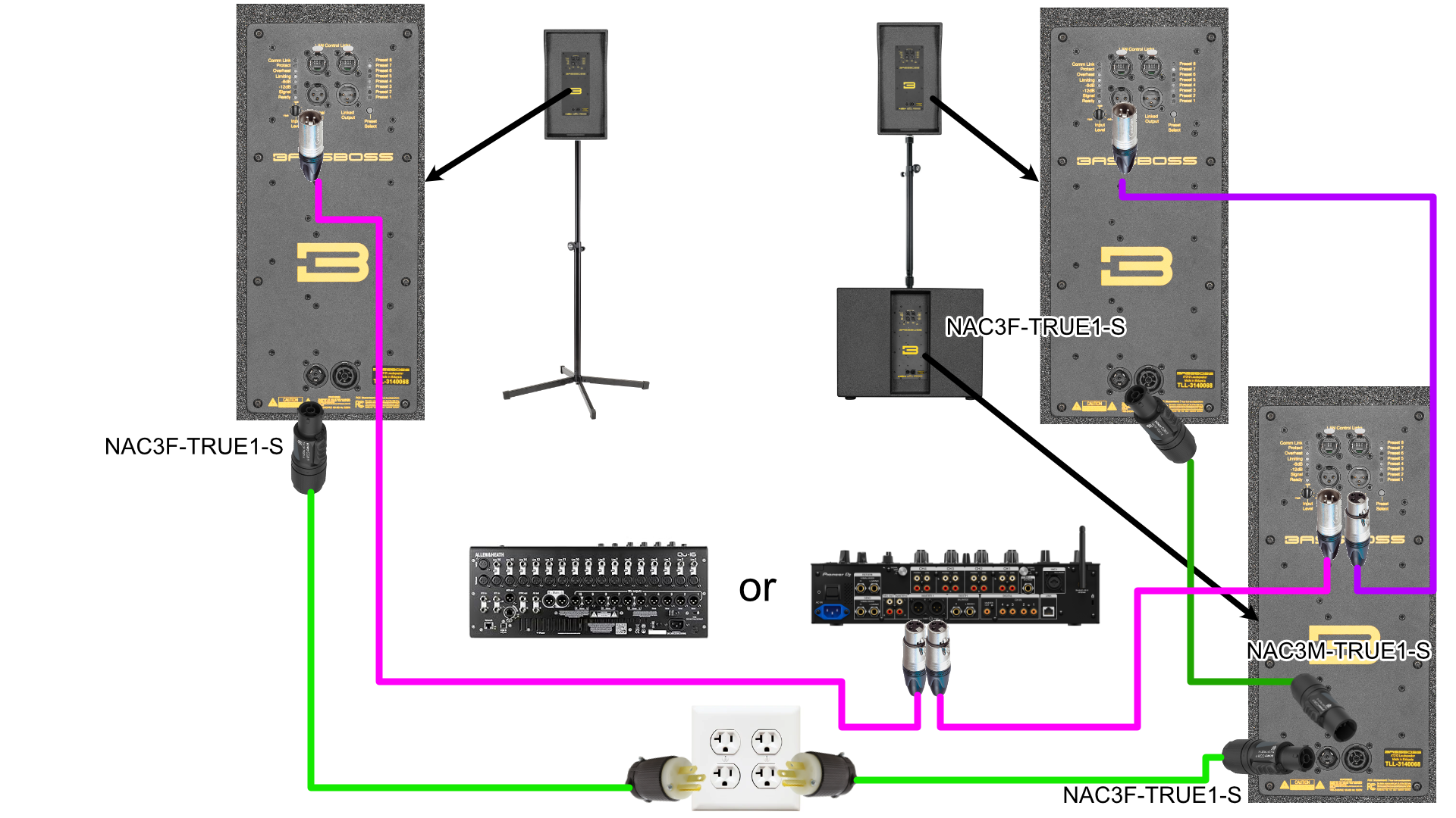 This article explains how to wire up combinations of several BASSBOSS subs + tops for maximum performance!